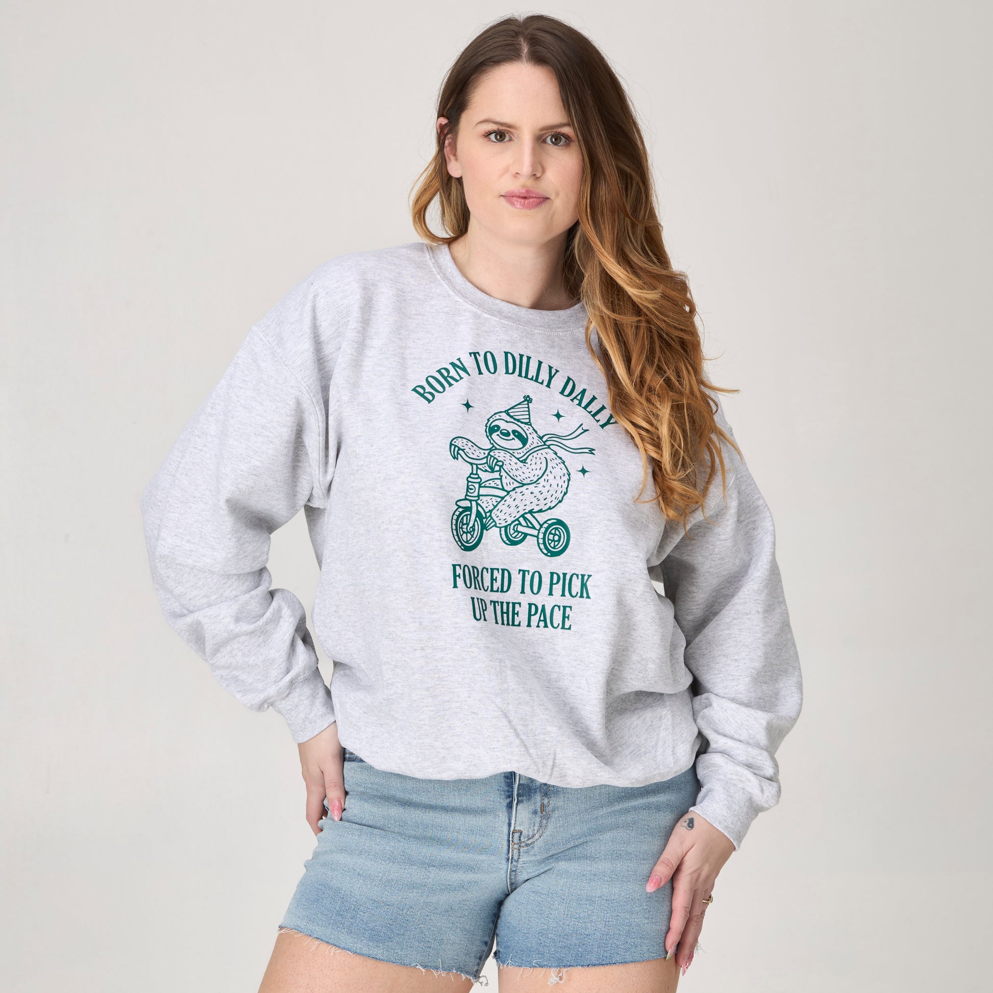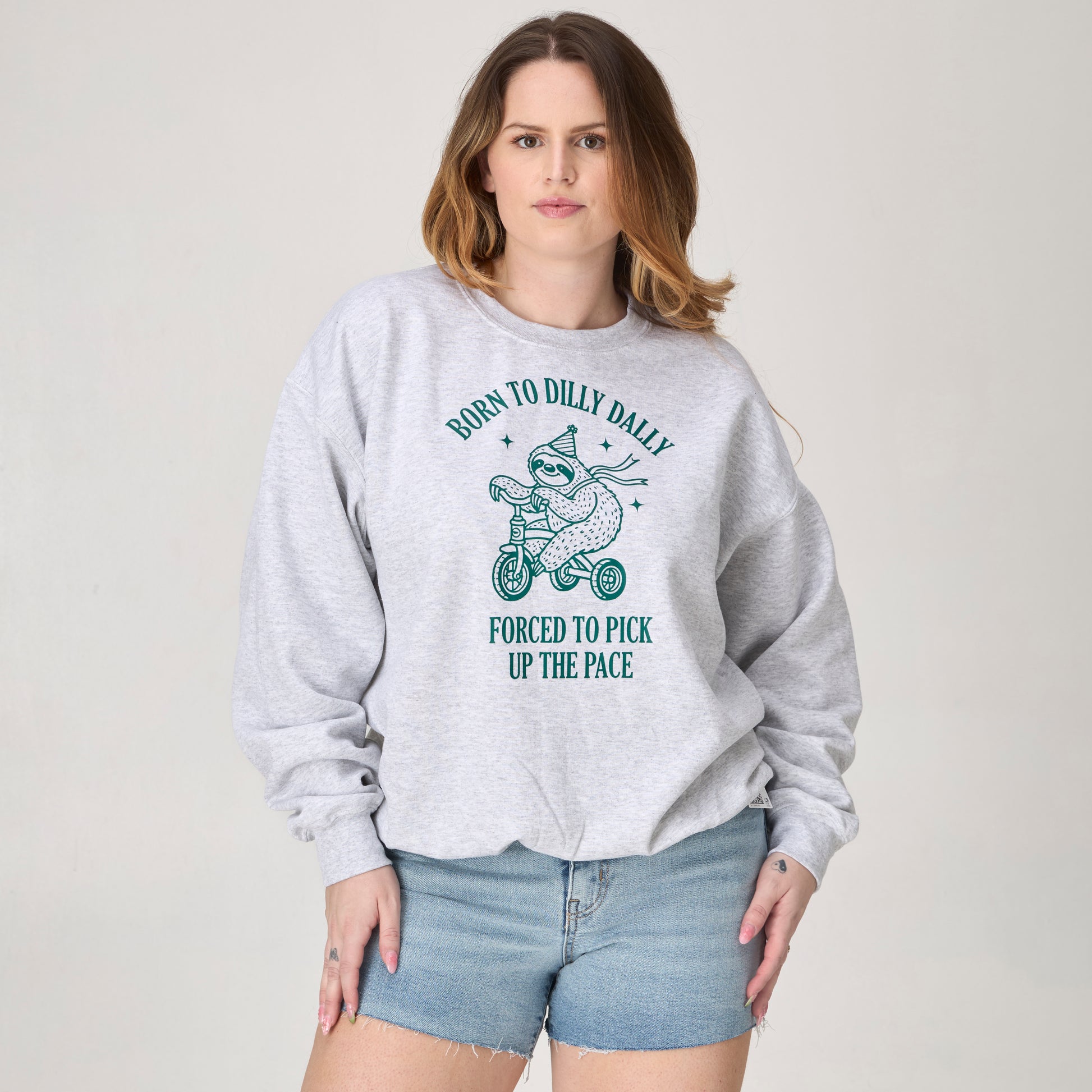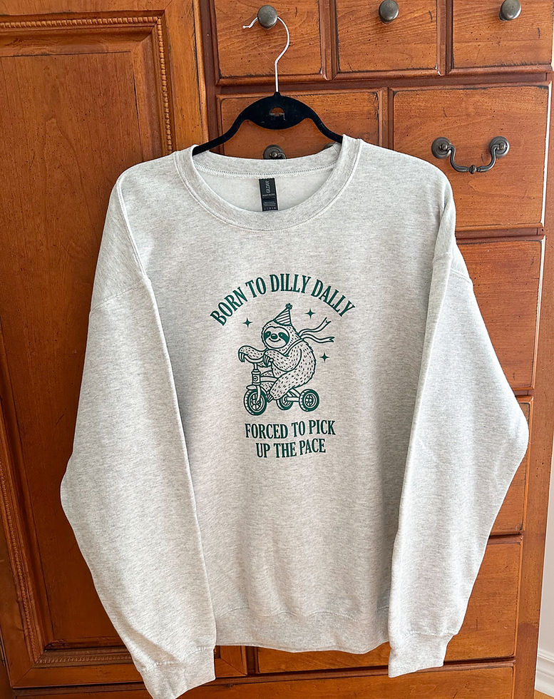 🐌✨ For those who love to take life slow but sometimes have to pick up the pace! This DTF (Direct to Film) printed sweatshirt features a hilarious sloth riding a tiny bike, paired with the playful quote: