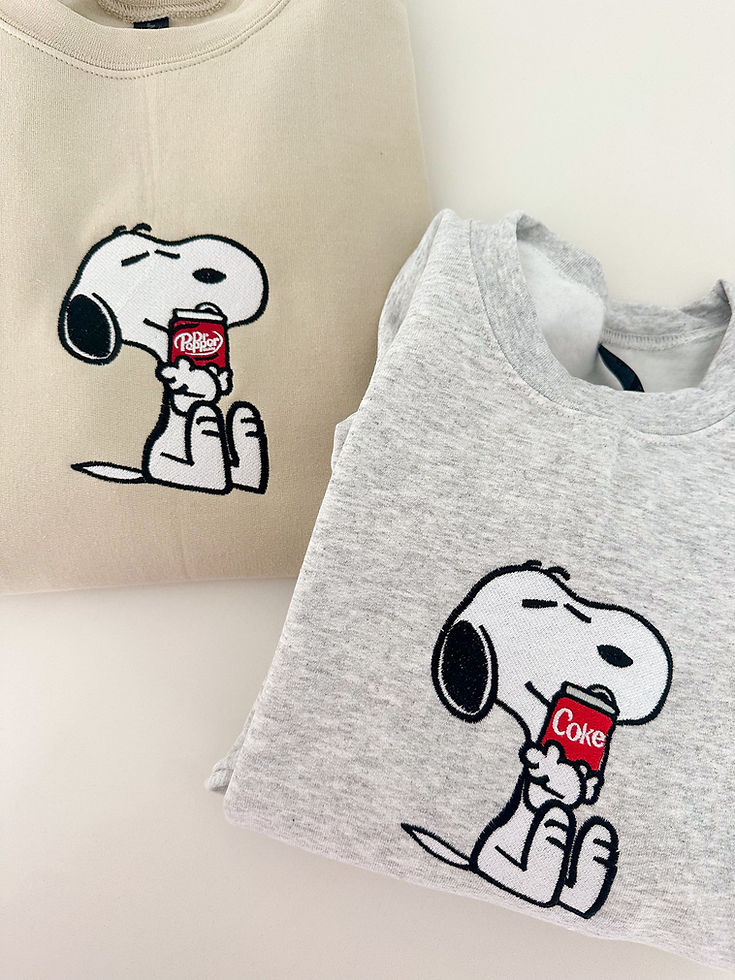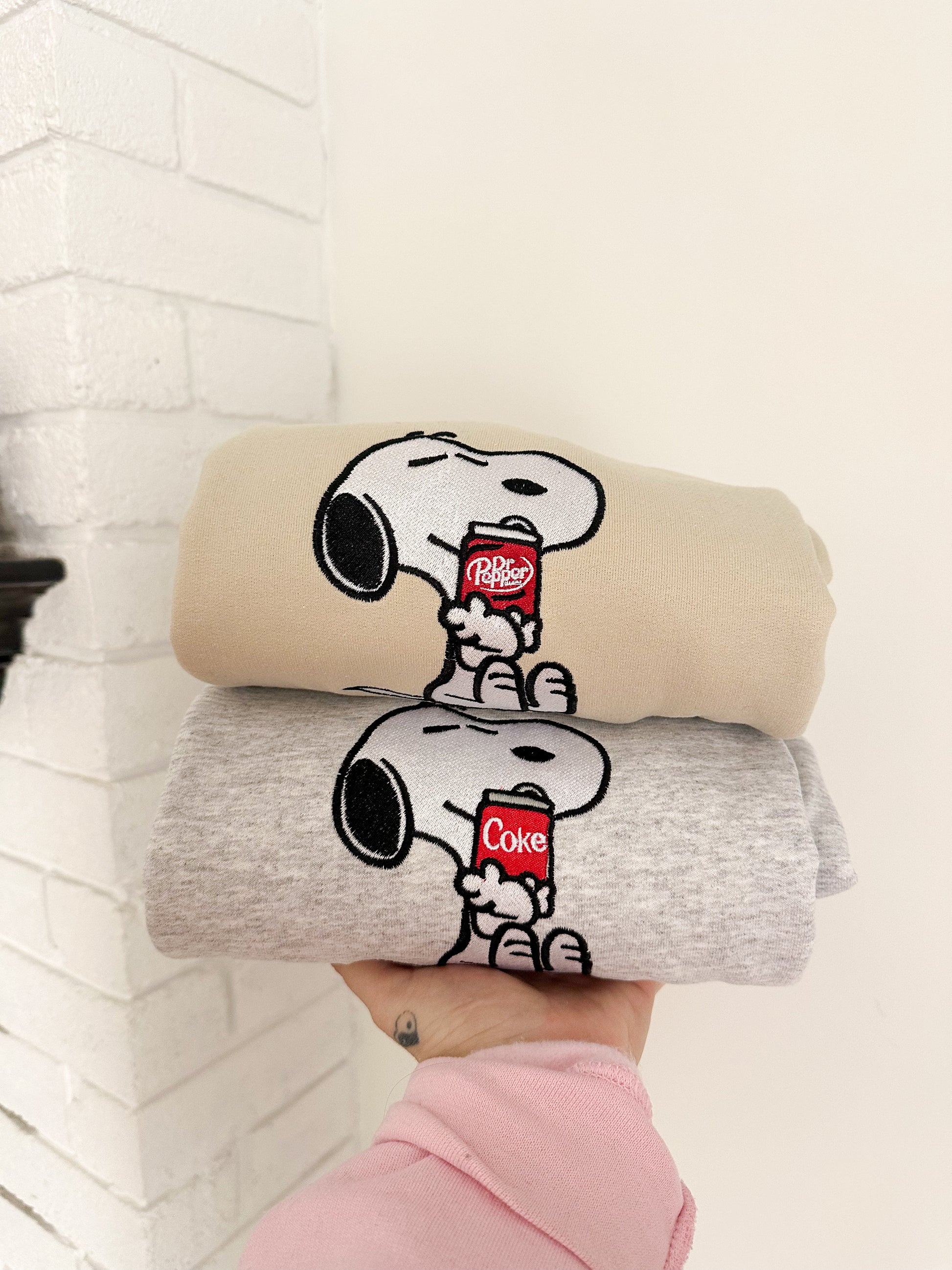 🥤 Kick back and relax in style! This cozy embroidered sweatshirt features a laid-back pup enjoying a refreshing soda—perfect for those who appreciate the simple joys in life.