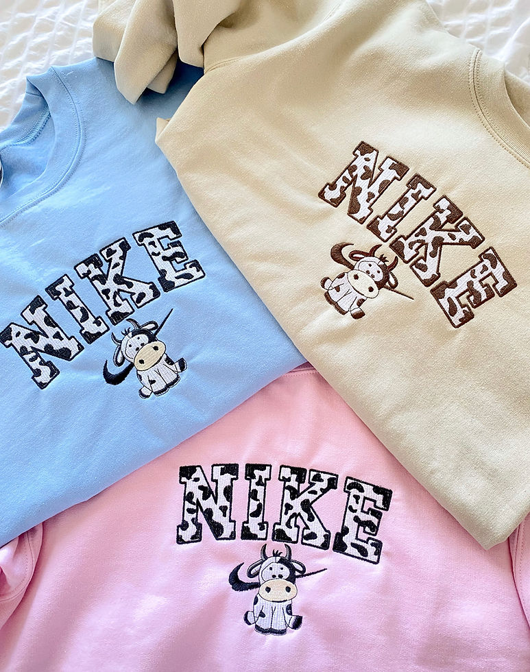 ✔ Adorable Cow Print Aesthetic – The varsity-style text is filled with cow print embroidery for a fun Western touch.