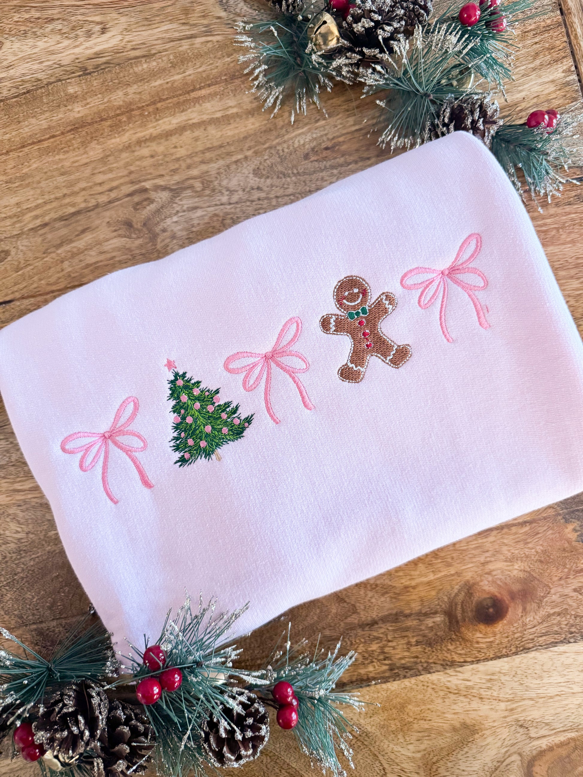 Gingerbread & Bows Christmas Embroidered Sweatshirt
