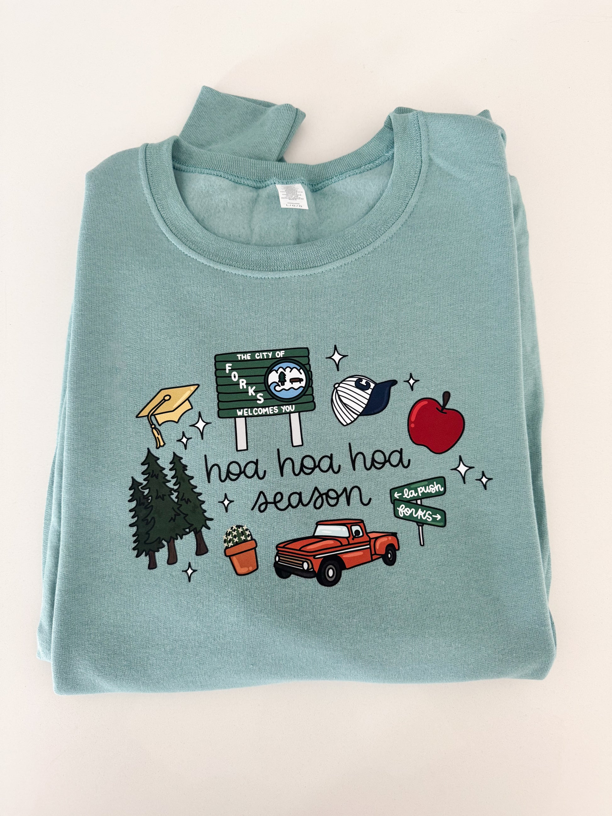 Bring a little bit of Forks, Washington into your wardrobe with this Hoa Hoa Hoa Season crewneck sweater. Featuring playful illustrations of the Forks city sign, La Push, Bella’s iconic red truck, and other nods to the saga, this cozy design is perfect for fans who never left their Twilight phase (and don’t plan to).
