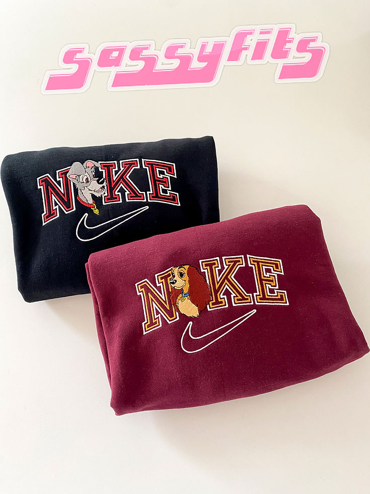 🐶💖 A timeless love story, now in cozy fashion! This beautifully embroidered sweatshirt features Lady & Tramp, paired with bold varsity lettering, making it the perfect piece for fans of this classic duo.