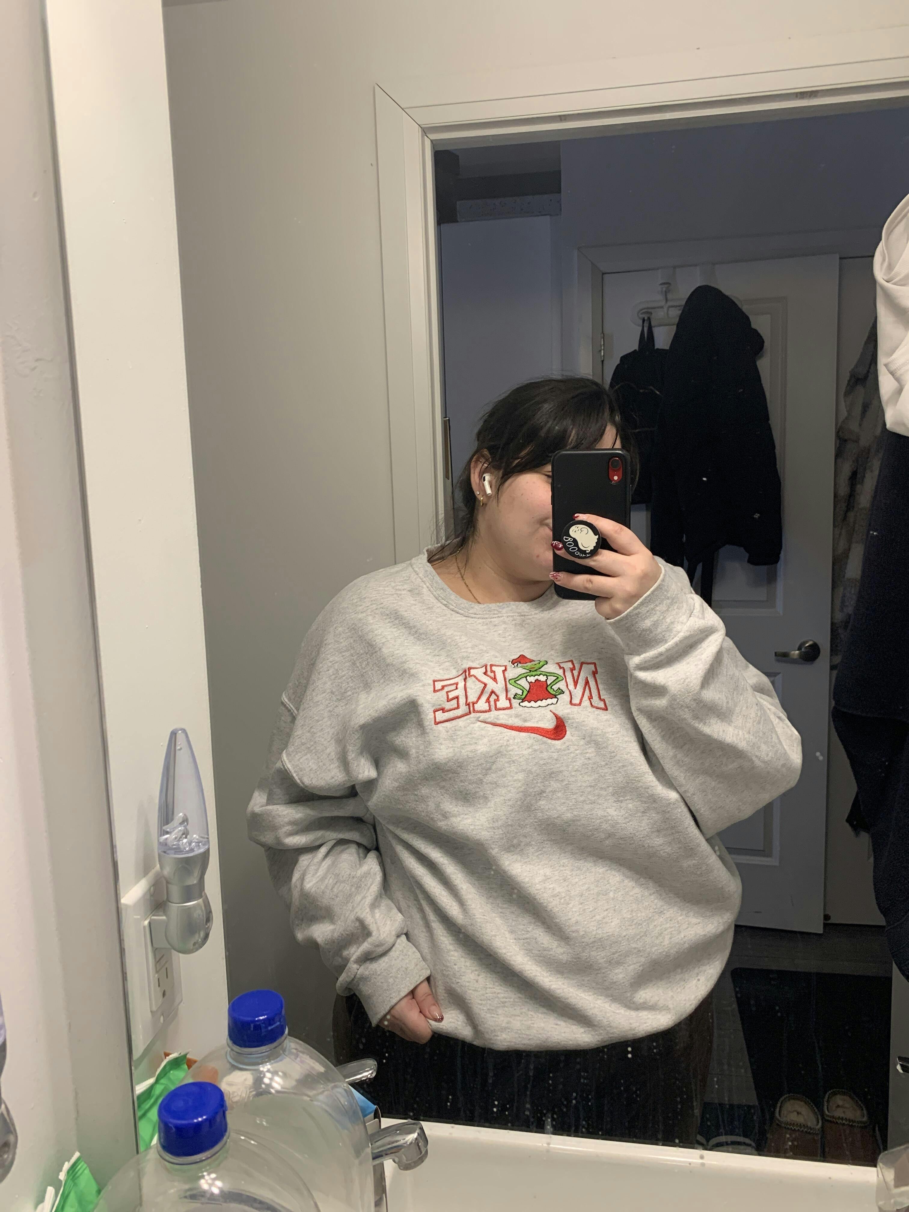 Celebrate the holidays in style with our Matching Grinchmas Embroidered Sweatshirts — a cozy and cheeky favorite for couples who love a little Christmas mischief! Each sweatshirt features detailed embroidery with bold varsity-style lettering, a festive red swoosh, and a sassy green character in a Santa outfit.