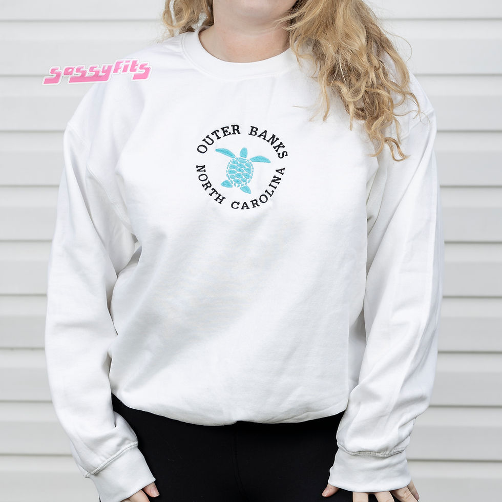 Bring the coastal charm of Outer Banks, North Carolina, to your wardrobe with this beautifully embroidered sea turtle sweatshirt!