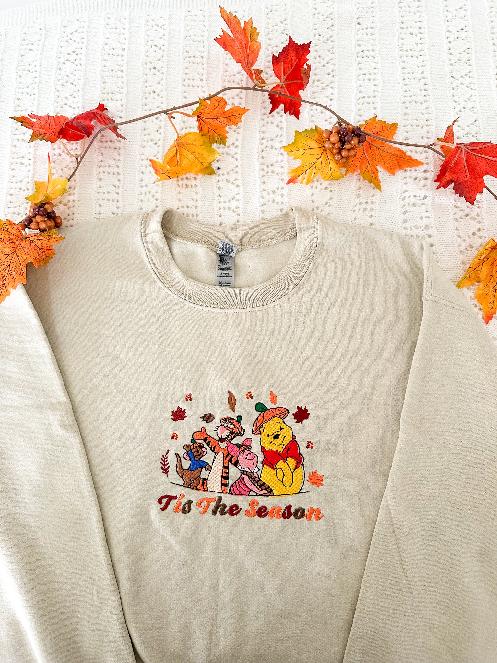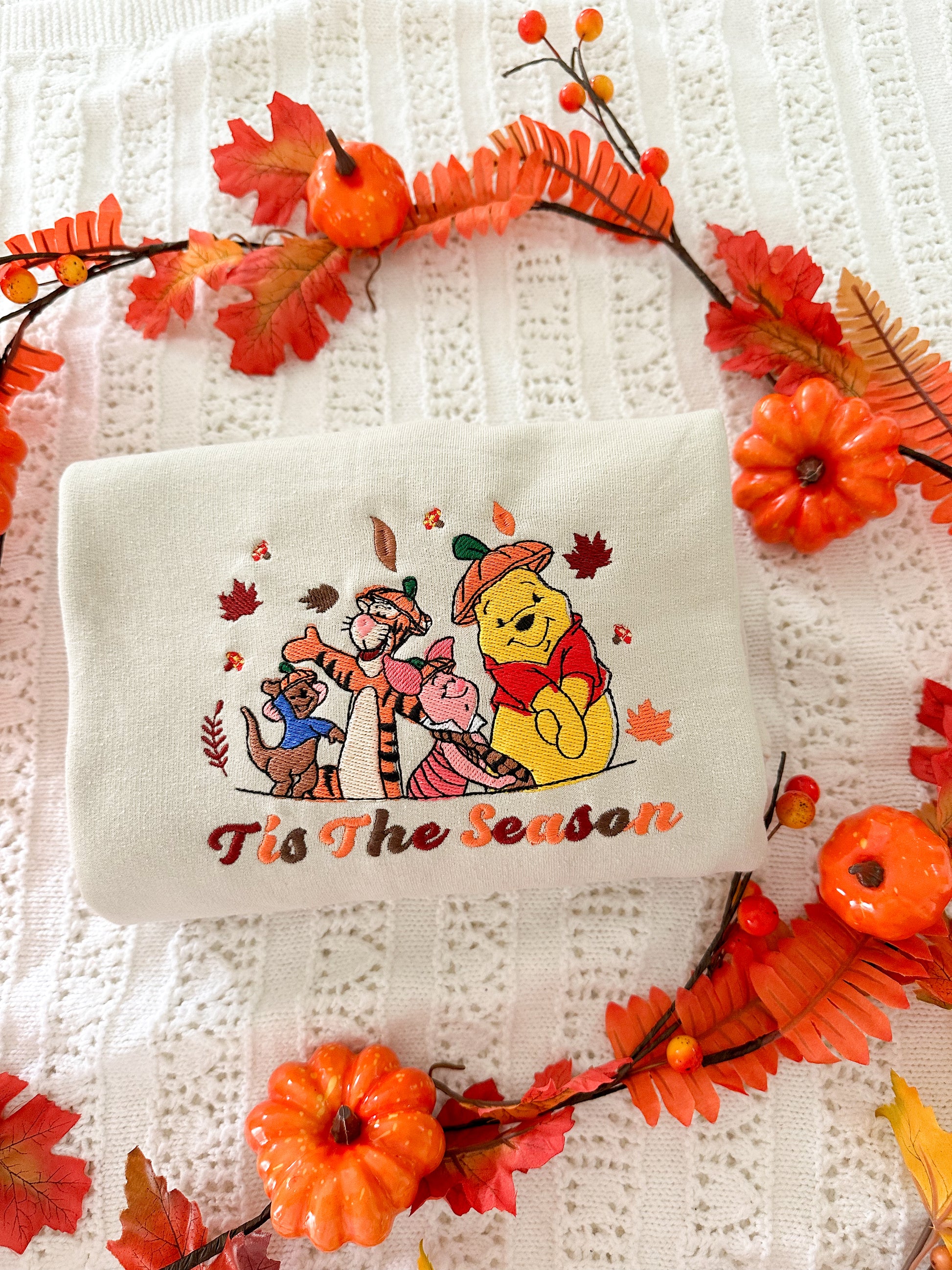 Cozy up in autumn style with this adorable embroidered sweatshirt featuring a charming fall-themed design of your favorite classic characters surrounded by crisp leaves. Perfect for pumpkin patch visits, coffee dates, or snuggling up on chilly evenings, this sweater blends nostalgic charm with seasonal vibes.